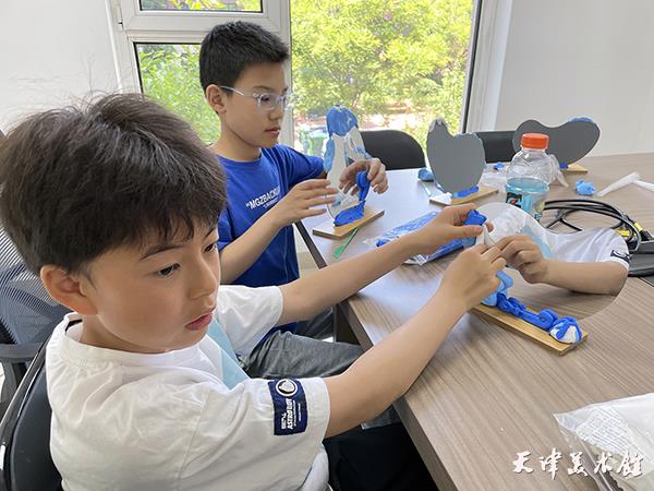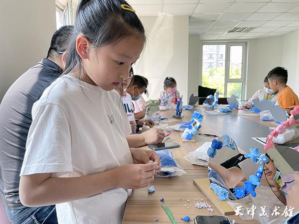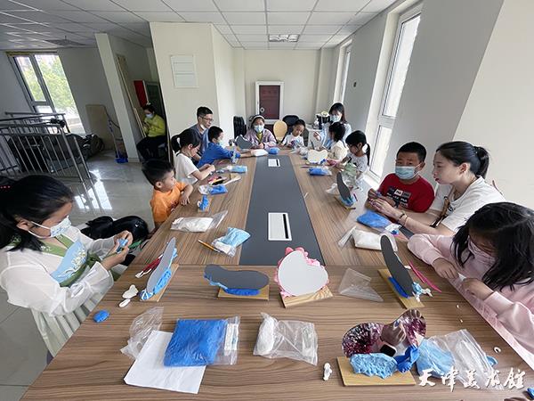 2023年5月13日,天津美术馆“美术进社区”项目组成员来到天津滨海新区菩提园、金栗园社区,为孩子们讲述津派面塑的由来与特点,并开展了两场“梦幻海洋”化妆镜的超轻黏土体验活动。