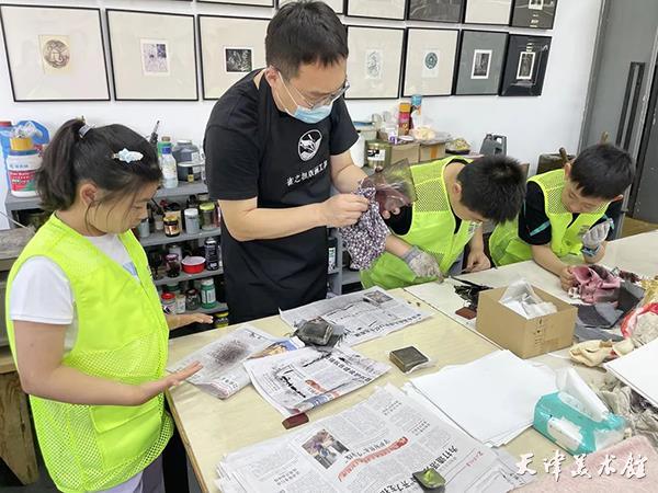 同学们尝试用特制的刻针笔,在亚克力板上挥洒想象力。干刻版画丰富的肌理,为同学们的创作增添了很多故事感,孩子们的作品简单、松弛,富有生命力。