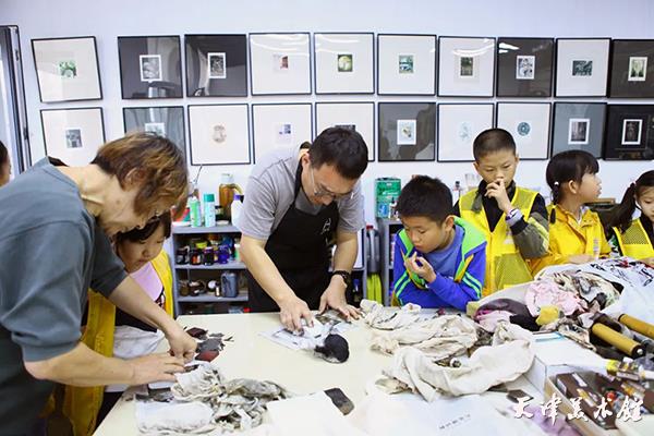 著名版画家刘硕海馆长为同学们讲解了一幅幅鲜活、形象的版画背后的创作过程,同时耐心地示范了亚克力板干刻版画的技法要领。同学们第一次尝试用特制的刻针笔,在亚克力板上自由创作、挥洒想象力。通过一上午的深度研学,同学们对盐早已有了不一样的认知,下午的艺术实践活动,便是对盐文化再拓展、再挖掘、再展现的过程,是研学活动“学思践悟”的重要一环。