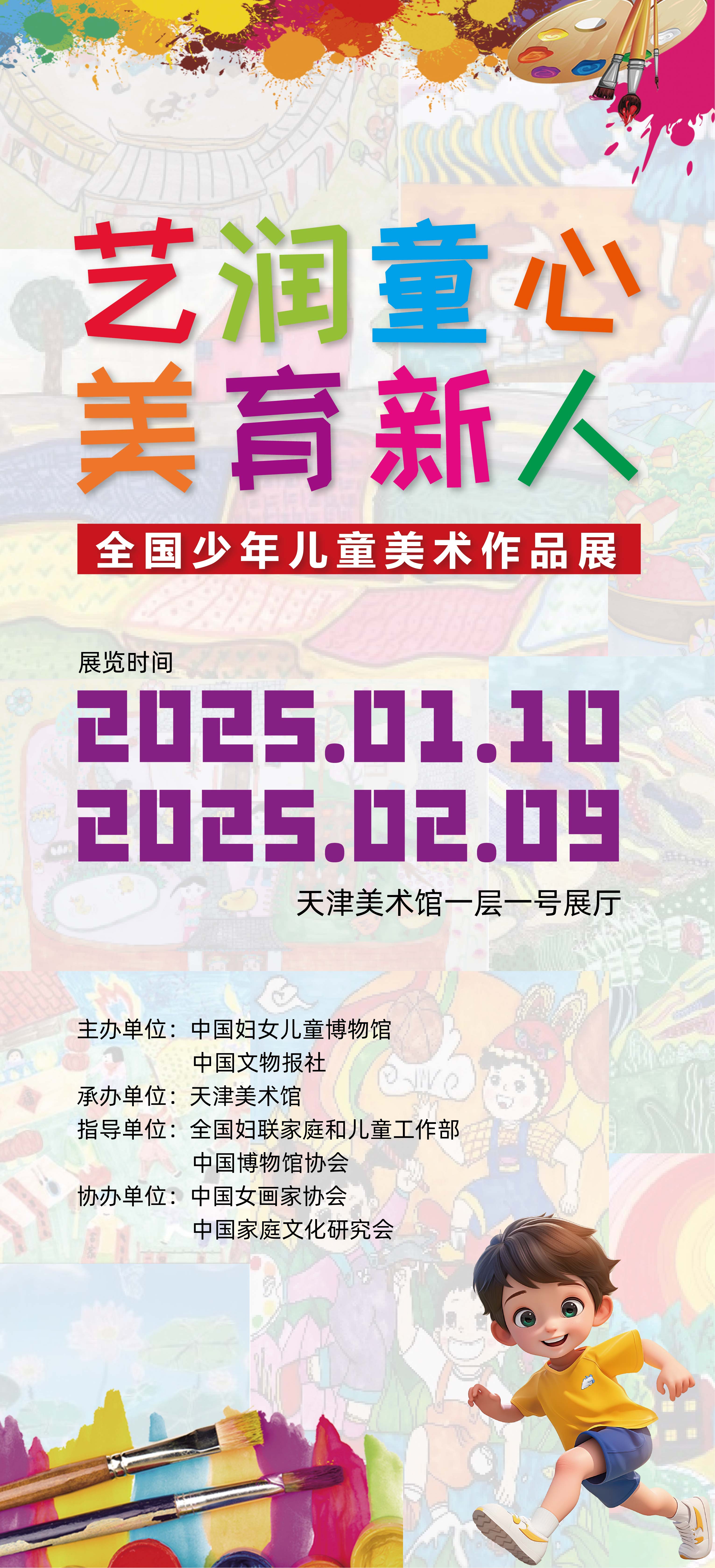 为深入贯彻党的二十大精神和习近平文化思想,落实习近平总书记关于妇女儿童和妇联工作的重要论述精神,弘扬中华优秀文化和美育精神,引导广大少年儿童从小感受美、发现美、创造美,由中国妇女儿童博物馆、中国文物报社主办,天津美术馆承办的“艺润童心美育新人”全国少年儿童美术作品展于1月10日在天津美术馆开幕。本次展览以儿童美术作品为依托,从祖国与家乡、成就与梦想、家庭与生