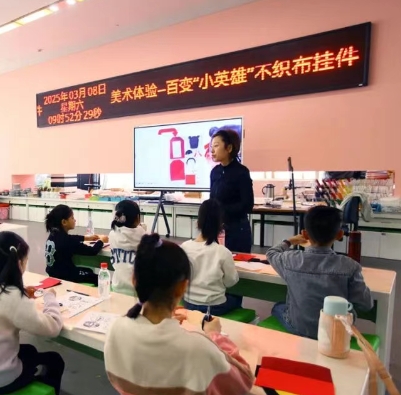 3月8日上午,天津美术馆“百变小英雄——不织布挂件活动”如约而至,将传统手工艺与现代动漫IP巧妙融合,让同学们在五彩斑斓的纤维世界里,亲手创造属于自己的“小哪吒”。活动伊始,主讲老