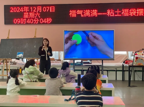 12月7日上午,“福气满满——粘土福袋摆件”美术体验活动在天津美术馆一楼顺利举行。活动伊始,主讲老师详细介绍了福袋的历史传承,深入浅出地讲解了福袋的工艺技法,并带领同学们一起观看了